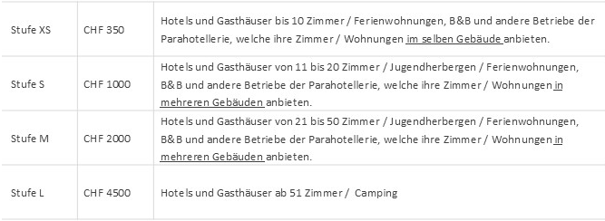 CHF 250.-. Dieser Betrag geht zu Lasten des Leistungsträgers respektive des Erlebnisses.