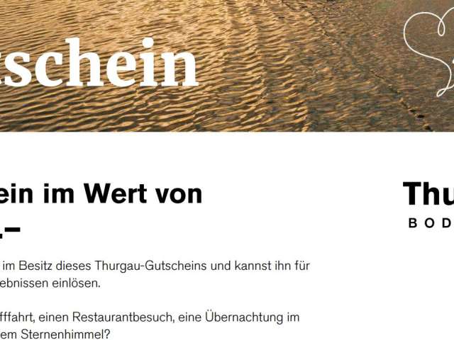 Das Verschenken von Gutscheinen wird immer beliebter. Der Schenkende steht jedoch oft vor der Frage, welcher Gutschein es denn sein soll. Der Thurgau-Gutschein liefert die passende Antwort. Dieser Gutschein ist frei wählbar und kann bei allen teilnehmenden Gastronomie- und Freizeitbetrieben im ganzen Kanton Thurgau eingelöst werden. Wie es im Detail funktioniert, lesen Sie hier.