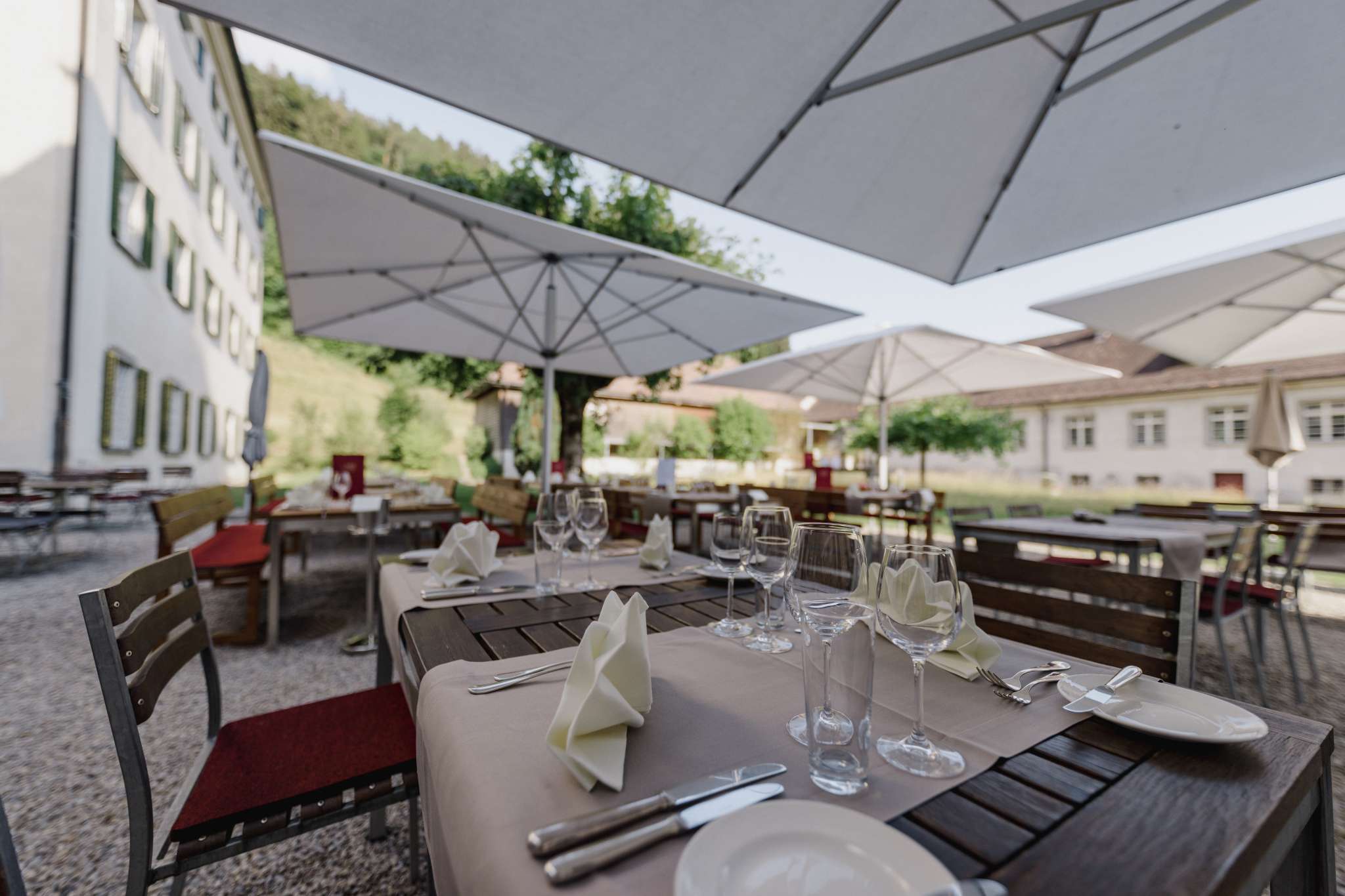 Das Kloster Fischingen ist ein historisches Hotel mit stimmigen barocken Räumen und somit der perfekte Austragungsort für jeden Event. Zugleich ist es ein touristischer Ort und beliebt bei Ausflüglern, die im Kloster ihre Ferien verbringen. Die kreativen Klosterköche verarbeiten mit Begeisterung, Zutaten aus dem Tannzapfenland. Für den ungezwungenen Aufenthalt steht den Gästen die Schenke zur Verfügung. Dort wartet eine Auswahl gekühlter PILGRIM-Klosterbiere auf Bierliebhaber*innen. Die 30 Gästezimmer sind ehemalige Mönchszellen. Die Zimmer begeistern mit ihrem klösterlichen Flair, das dezent gegenwärtig ist. Geburtstage, Jubiläen, Hochzeiten, Familienfeiern – die Klostergastronomie verfügt über vier verschiedene Räume, die individuell eingerichtet und je nach Feier geschmückt werden. Die klassischen Konzerte beschenken die Besucher mit kostbaren Glücksmomenten. Das Kloster Fischingen besitzt zwei Elektroautoladestationen und auch E-Bikes können auf dem Areal aufgeladen werden.