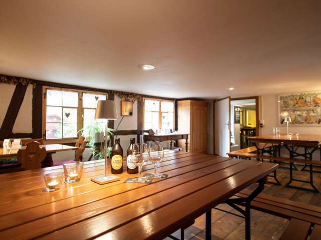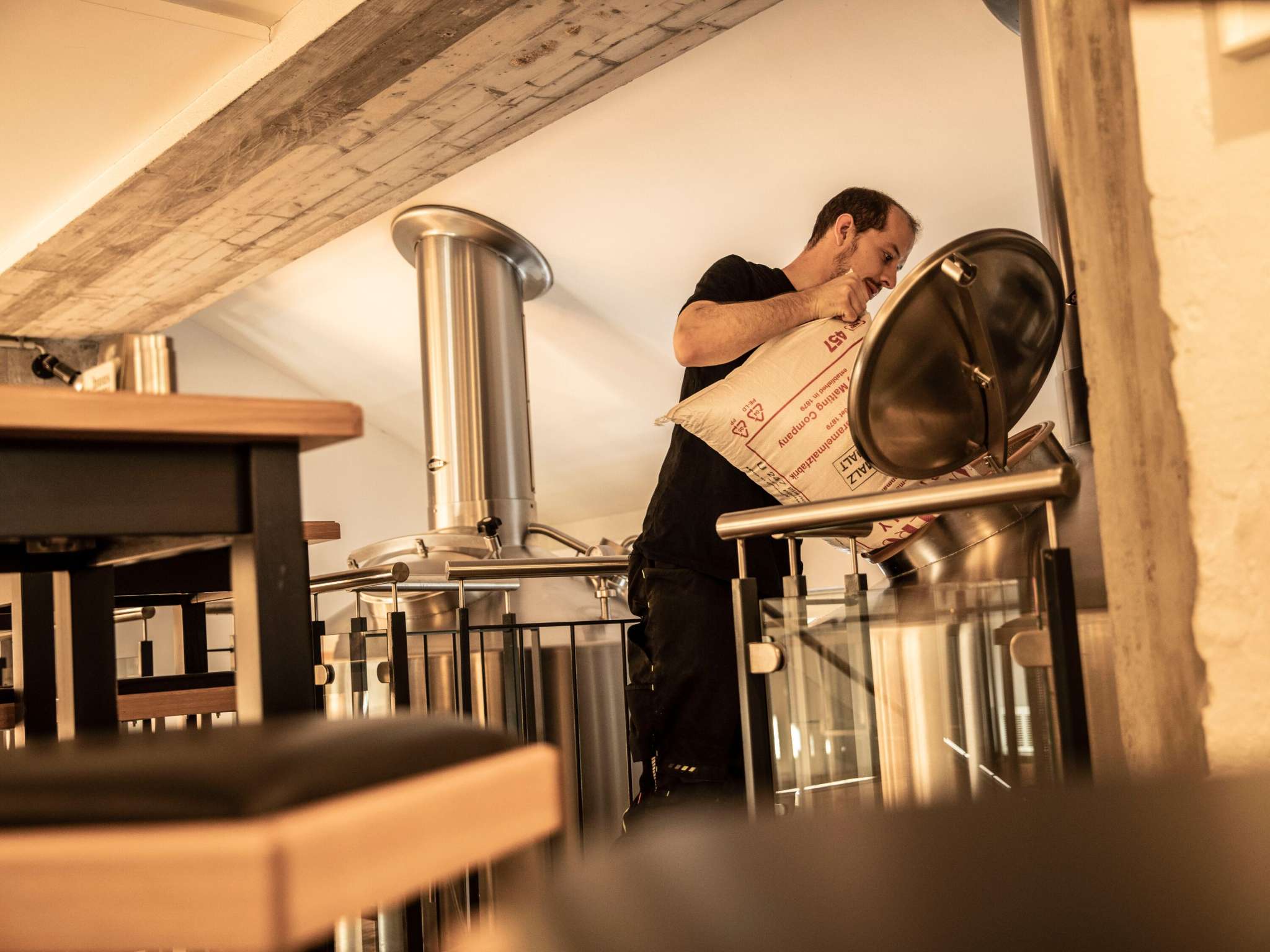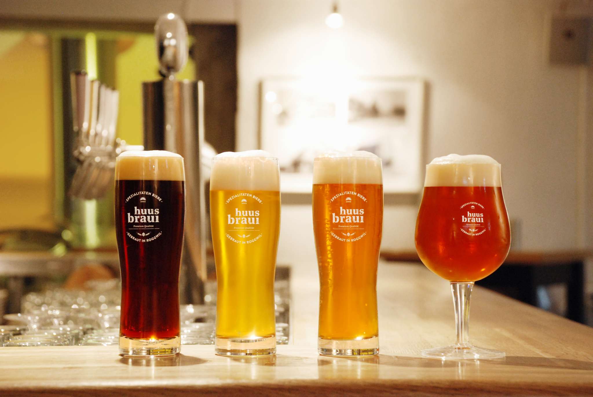 Die Brauerei liegt im Herzen von Roggwil TG, gleich neben einer der schönsten Schlossanlagen des Kantons. Wer die Bar besucht, steht gleichzeitig «in» oder «über» der Brauerei und hat Einsicht auf die grossen Tankanlagen. Auf Anfrage kann man sich durch die Brauerei führen lassen und so einiges über die Bierbraukunst erfahren. Die gemütliche Bar in den schön ausgebauten Kellerräumen der «alten Öli» ist zu einem beliebten Treffpunkt geworden. Direkt in der Brauerei geniessen die Gäste ihr Feierabendbier. Ob hell, dunkel, gold oder das momentane Spezialbier, das Personal ist bei der Wahl gerne behilflich. Auch der kleine Hunger kommt nicht zu kurz. Die kleinen aber feinen Snacks runden das Biererlebnis in der Huus-Braui ab.