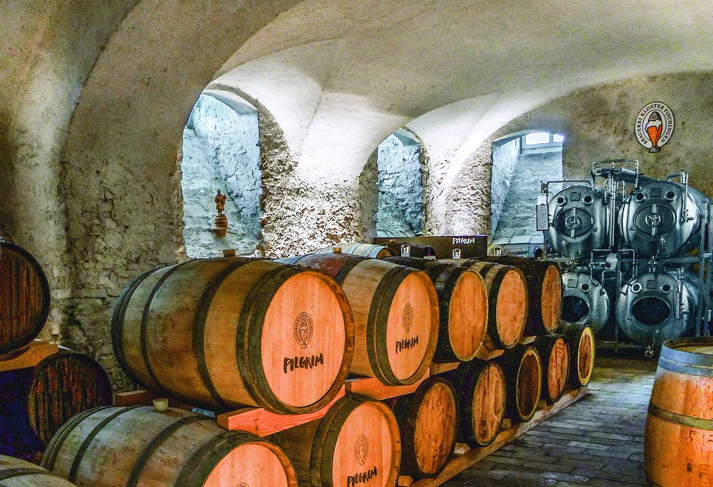 Das Benediktinerkloster Fischingen ist das letzte aktive Kloster im Kanton Thurgau. Was hier auch aktiv betrieben wird, ist das Bierbrauen. Rund 15 verschiedenen Pilgrim-Craftbiere werden in der Klosterbrauerei hergestellt. Berühmt sind die holzfassgereiften Grand Crus mit bis zu 16 Prozent Alkohol und Lagerung im 300 Jahre alten Klosterkeller. Aber auch die Abteibiere, gebraut nach überlieferten Rezepten der Trappistenmönche und serviert in Champagnerflaschen, sind ein Gaumenschmaus. Im Brauereiladen, in der Klostergastronomie oder im Onlineshop sind Pilgrim-Craftbiere erhältlich. Bierbegeisterte entdecken diese lebendige Braukultur bei buchbaren Brauereibesuchen mit Bierverkostungen für Gruppen. Einzelpersonen heisst die Pilgrim-Brauerei jeweils am ersten Samstag im Monat für Führung und Degustation willkommen. Für die vielen Freunde vom Pilgrim-Bier organisiert die Brauerei regelmässig Anlässe im Klosterhof.