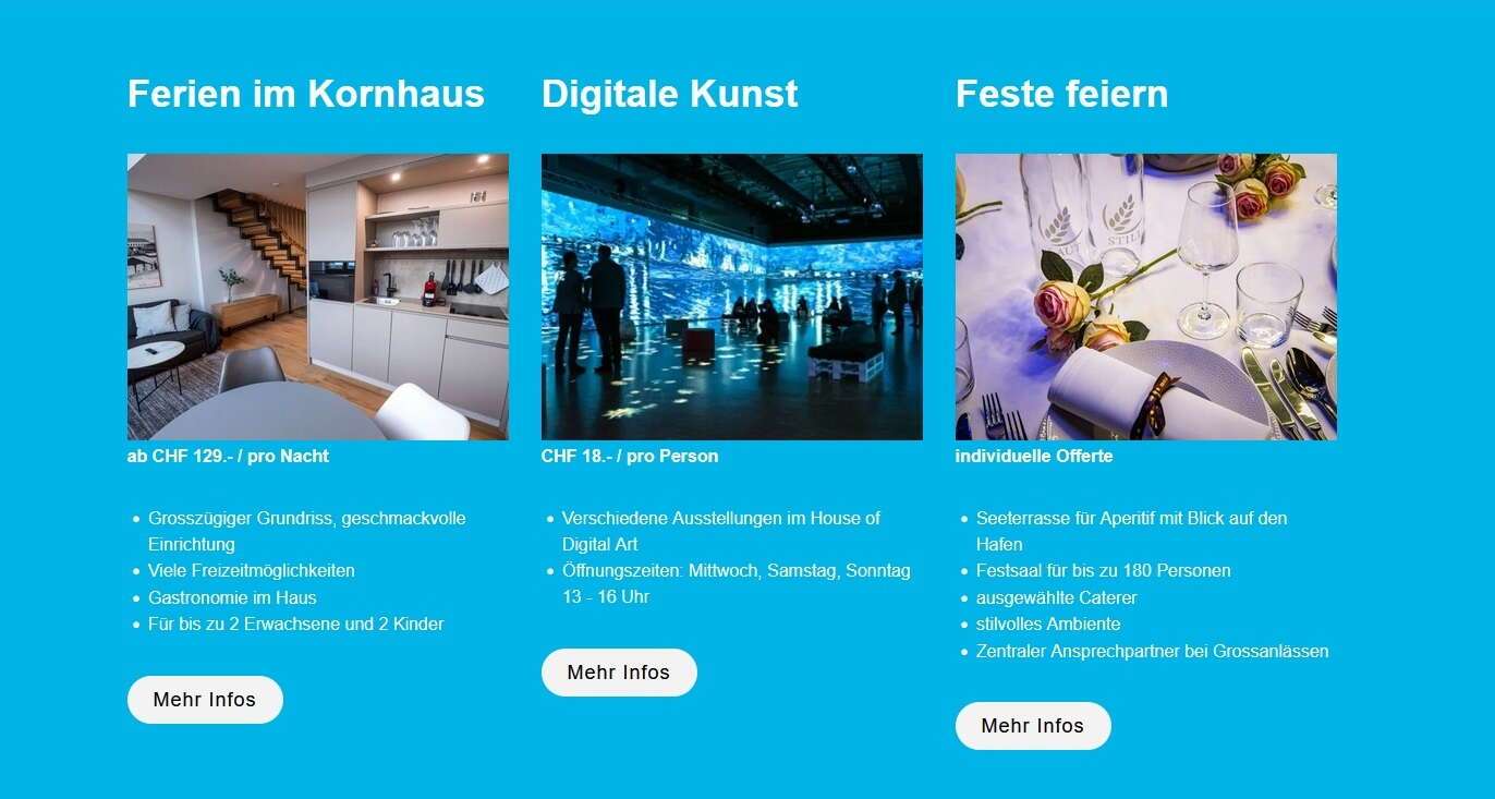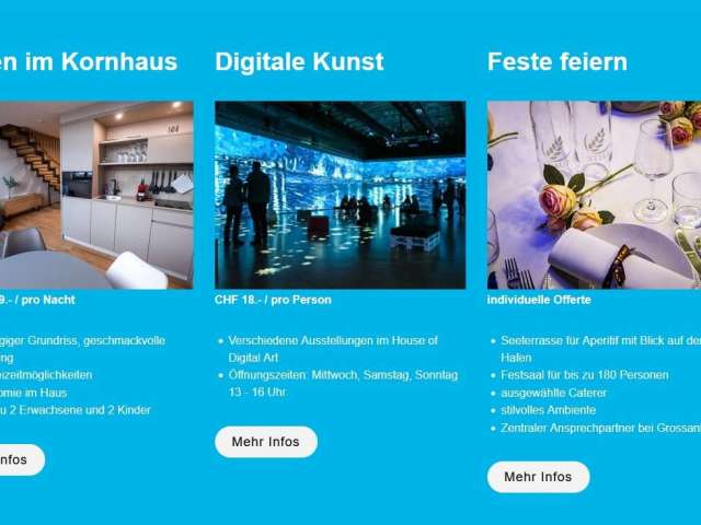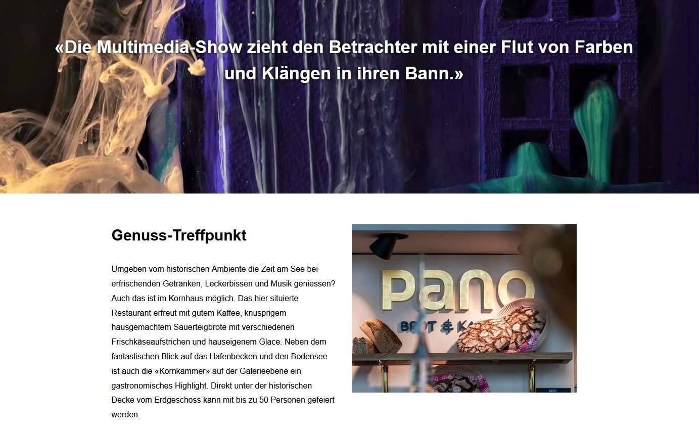 Auf der Destinationsseite www.thurgau-bodensee.ch präsentiert TGT das touristische Angebot des Kantons. Partner können sich in Form von Newseinträgen oder Stories wirkungsvoll präsentieren und so eigene Akzente setzten. Nutzer: 70 000 pro Monat. Erscheinung: monatlich (Auswahl über Drop-Down). Partner, die aus vergangenen Jahren bereits eine Erlebnis-Story auf der Website von TGT online haben, können diese Story auf der Startseite sowie einer passenden Übersichtsseite erneut prominent platzieren. Inhaltlich werden nur Daten oder fehlerhafte Texte angepasst. Keine neue redaktionelle Aufarbeitung. Laufzeit 1 Monat als «Key-Story» auf Hauptseite. Für Beispiel hier klicken.