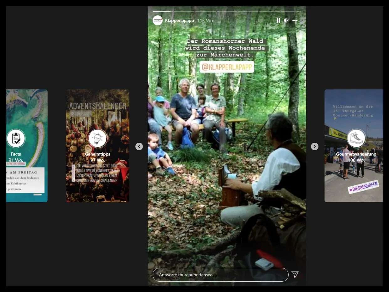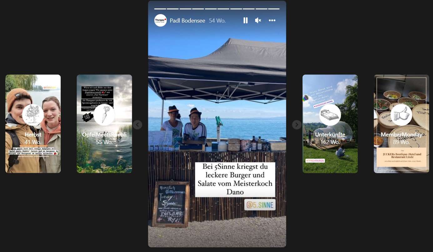 TGT ist auf verschiedenen Social-Media-Plattformen präsent und pflegt unter anderem die Seite auf Instagram. Der Partner hat die Möglichkeit, eine Instagram-Story für eigene Angebote mit touristischer Relevanz zu buchen. Abonnenten: 10'600.